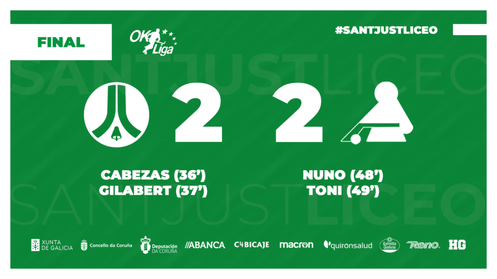 Tardó pero llegó. Del 48 al 49, el Liceo empató para rescatar un punto que parecía improbable. Acortó distancias Nuno y le siguió Toni Pérez, oportuno para rematar un buen pase de la muerte. 2-2, final y a pensar en la segunda visita consecutiva: tocará Igualada (sábado 2, 18:00h).