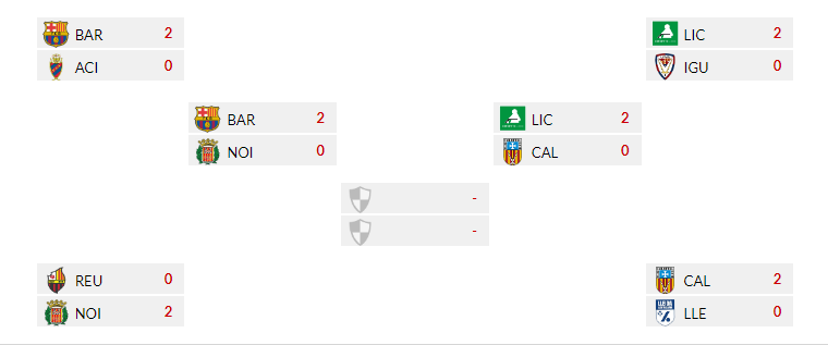 Unha situación semellante ocorre no outro lado do cadro. As semifinais disputadas entre o Barça e o Noia deixaron dúas vitorias azulgranas despois dos encontros celebrados no Palau de Barcelona. A ronda trasládase agora a Sant Sadurní e, se os de Edu Castro gañan, pasarían á final.